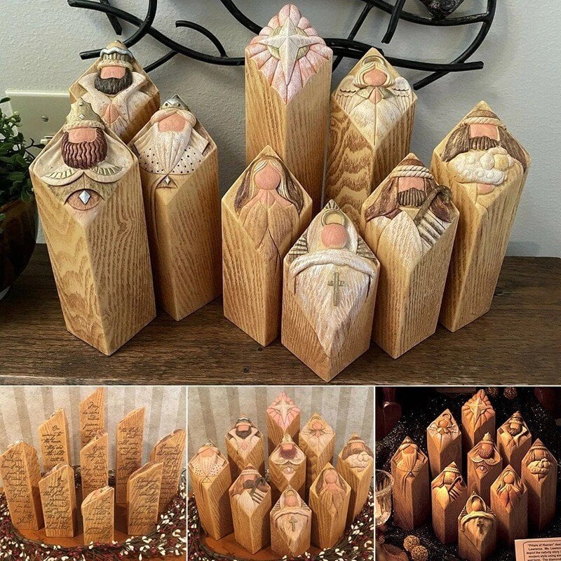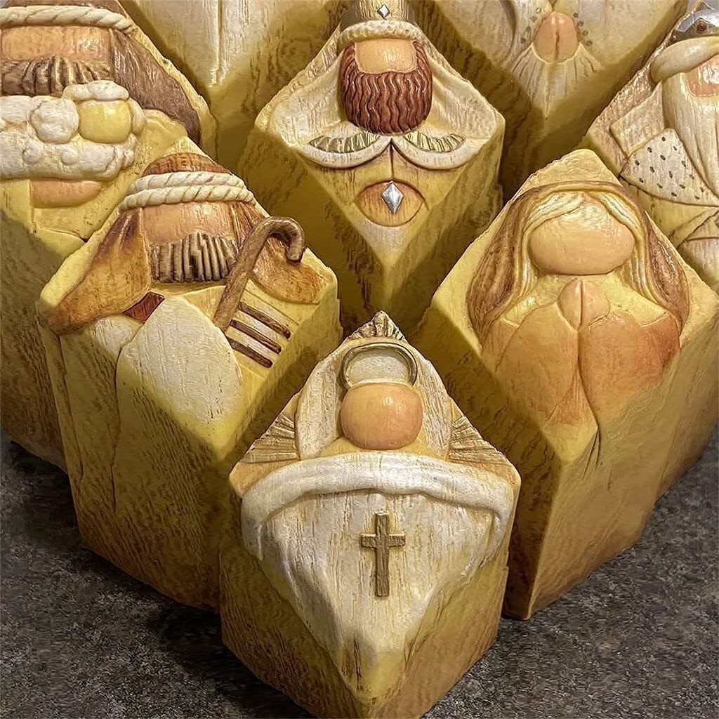 ❥ [9 Nativity Tree Pillar Statues] Nine beautifully hand-crafted, resin ornament represent the classic figures of the nativity. Makes a wonderful addition to any nativity collection. Heaven pillar statues collectible