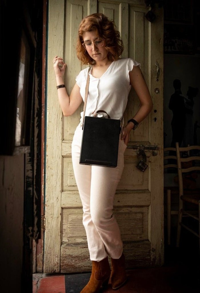 - Engage the leather inner strap when opening your box while hanging on your shoulder.